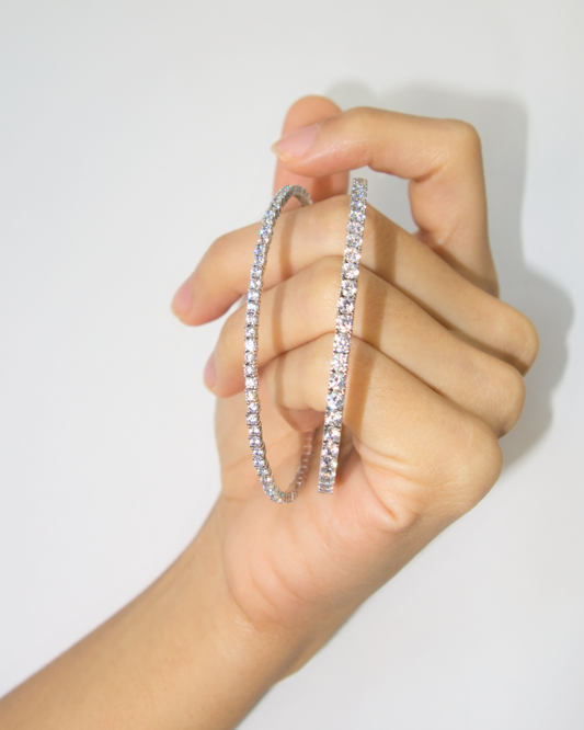 ARETES TIPO HUGGIES DE ORO 14K CON DOBLE TIRA DE CIRCONIAS SKU:OR0437