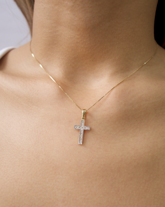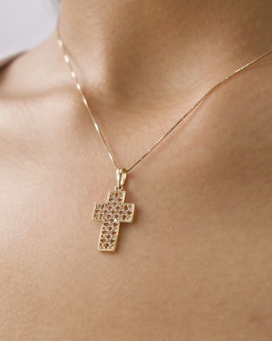 DIJE DE CRUZ CON CIRCONIAS DE ORO 14K
