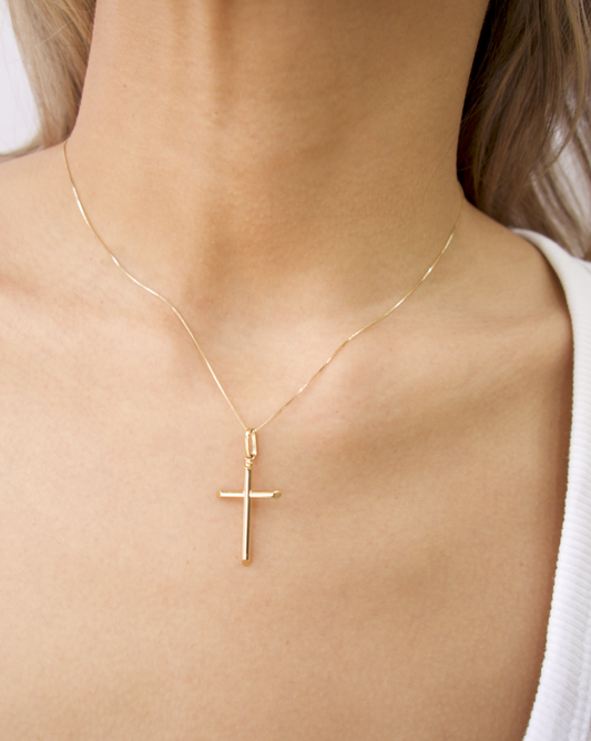 DIJE DE CRUZ LARGA LISA DE ORO 14K