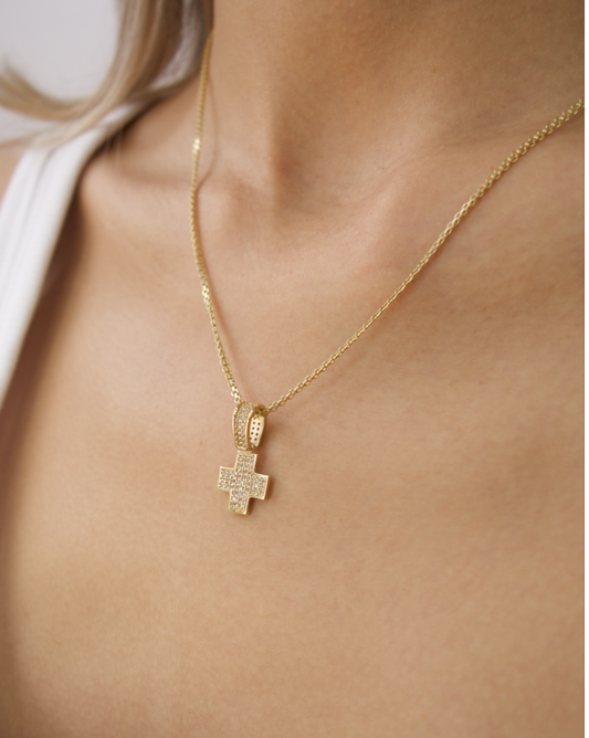 DIJE DE CRUZ CUADRADA DE CON CIRCONIAS DE ORO 14K
