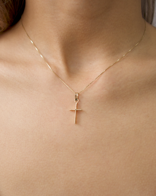 DIJE CRUZ DELGADA DE ORO 14K SKU: OR0356