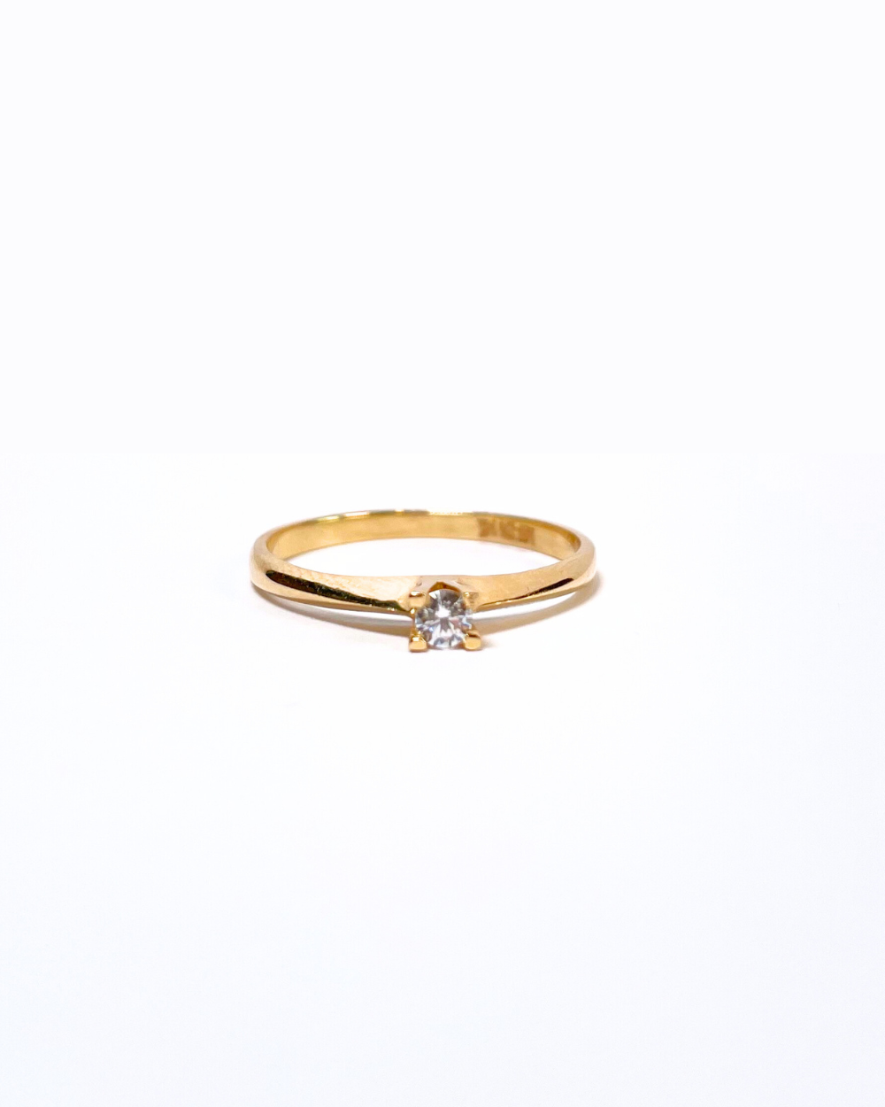 Anillo de Oro 14k liso con circonia chica en medio, anillo liso elevando la circonia