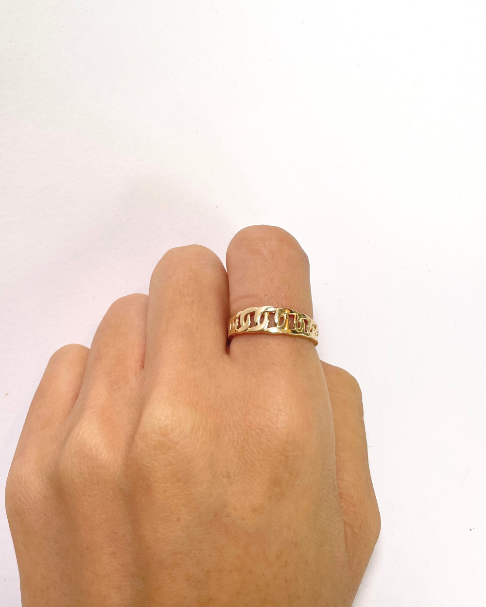 Anillo de Oro 14k con forma de cadena por enfrente liso
