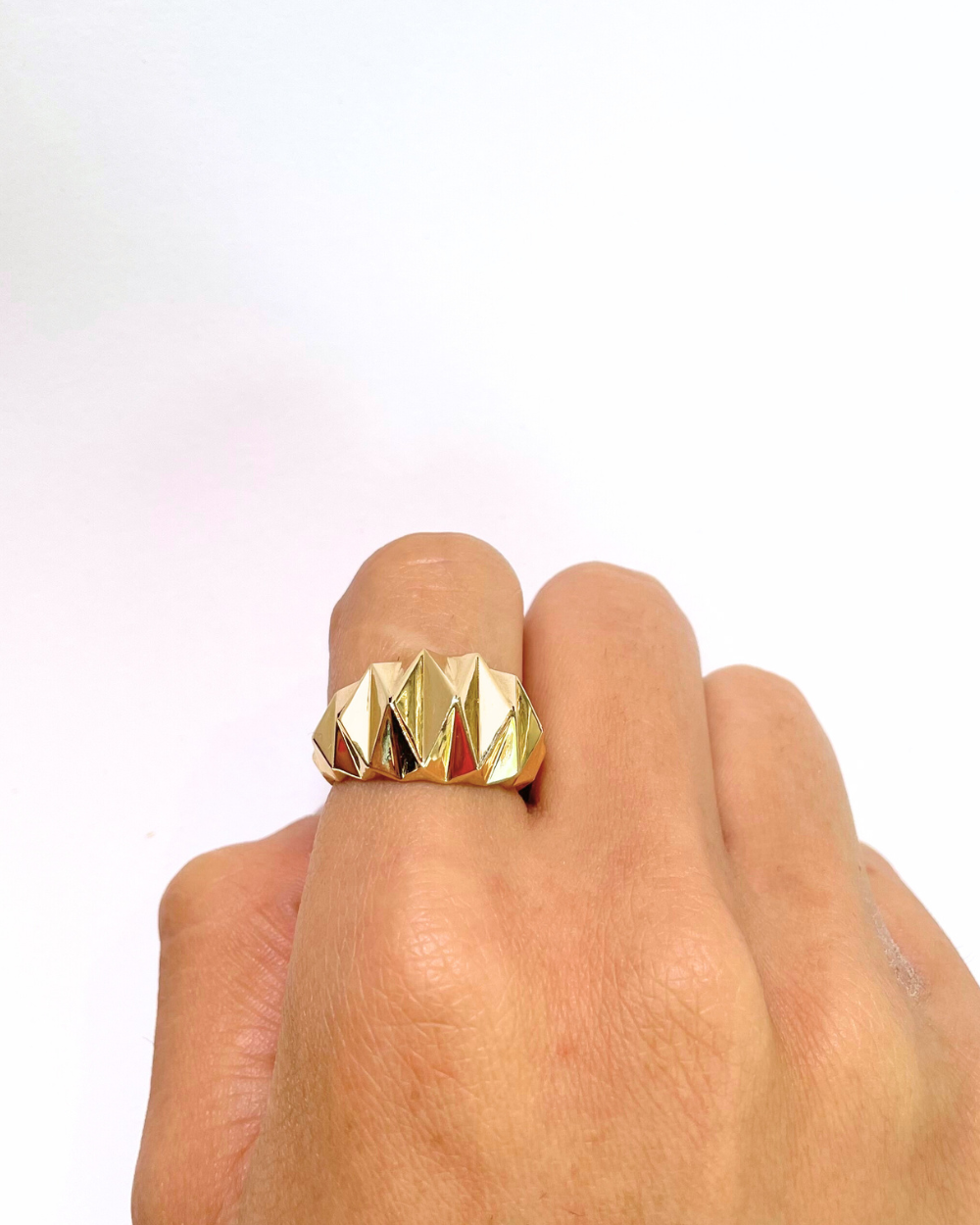 Anillo de Oro solido de 14 kilates en formas de rombos 3D