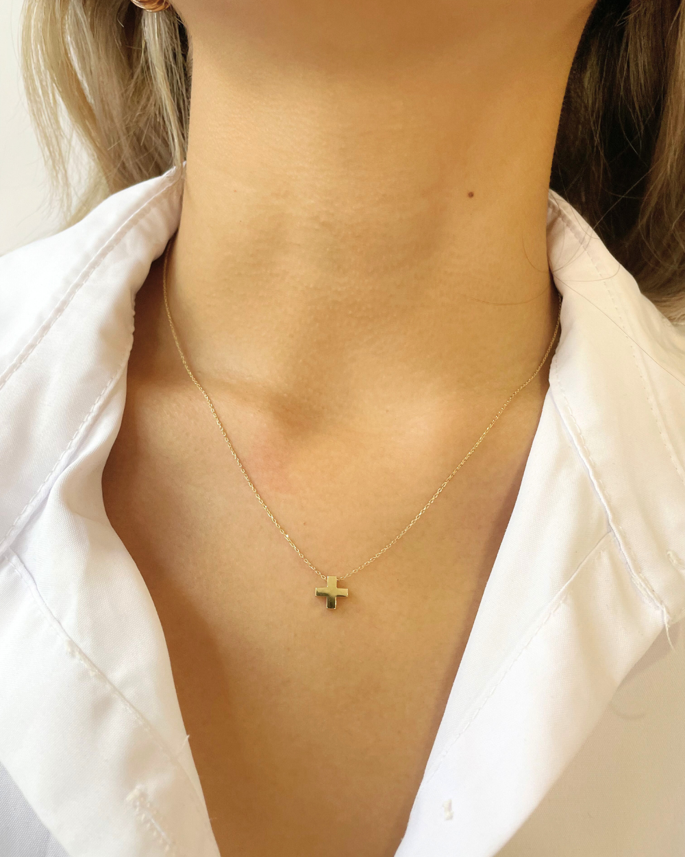 COLLAR DE CRUZ LISA Y CON CIRCONIAS ORO 14K