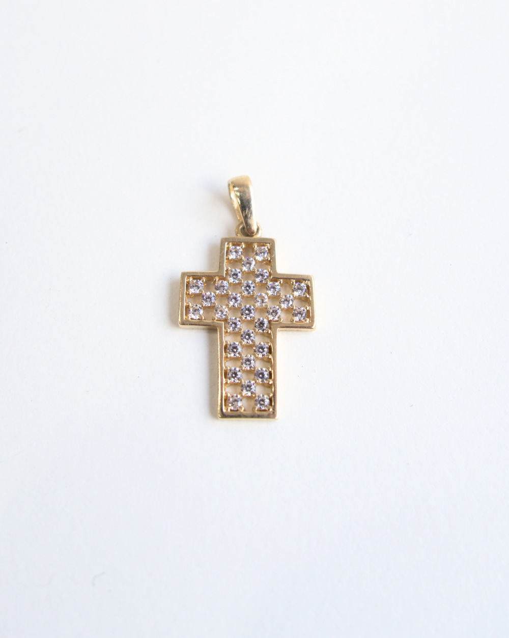 DIJE DE CRUZ DE ORO 14K CON CIRCONIAS
