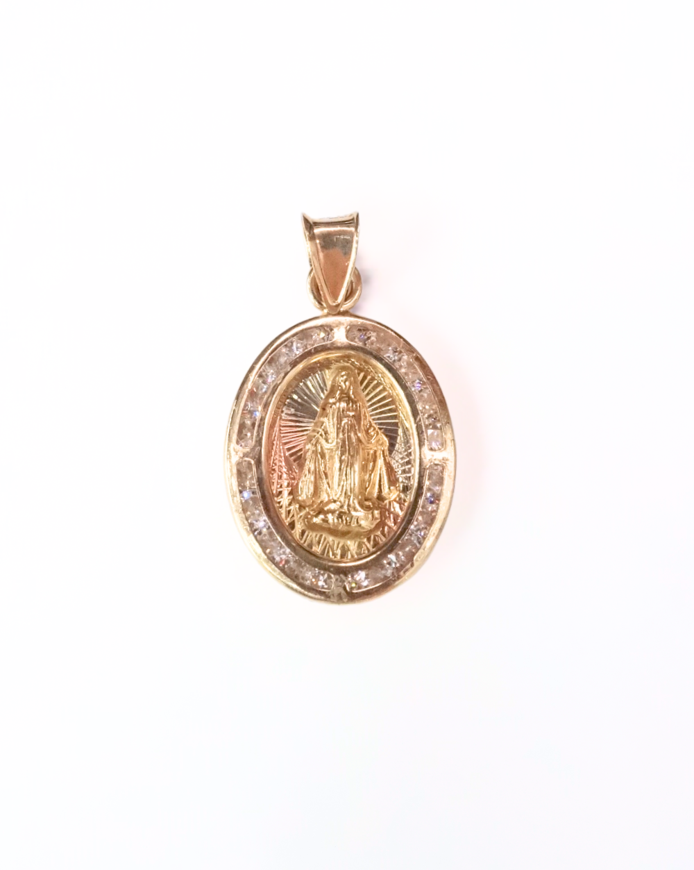 MEDALLA DE LA VIRGEN MILAGROSA CON CIRCONIAS DE ORO 14K
