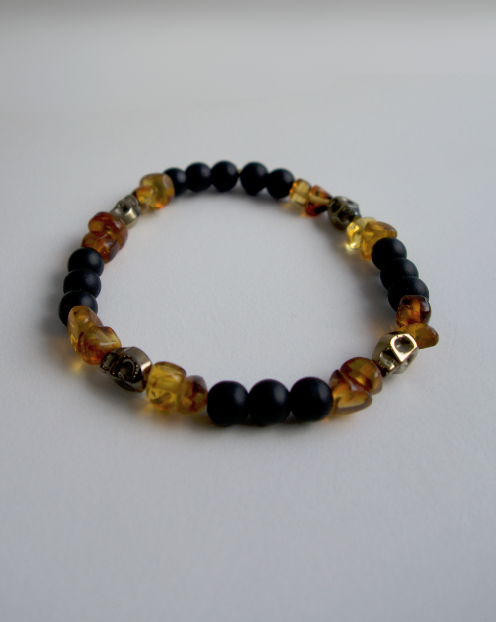 PULSERA CALAVERA DE HOMBRE LAVA Y ÁMBAR ELÁSTICA