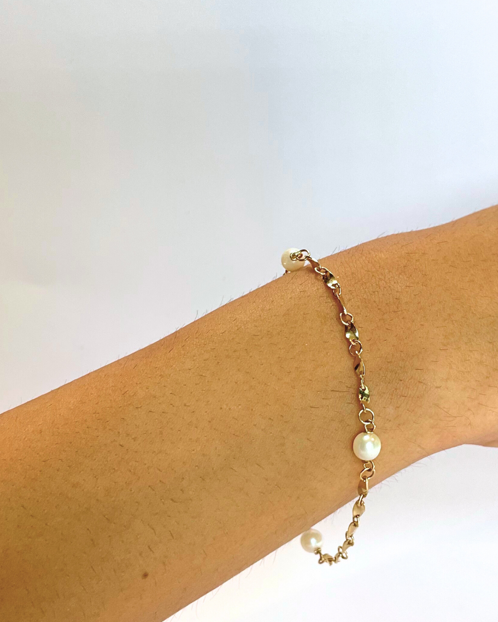 PULSERA CON PERLAS ORO 14K SKU: ORO64