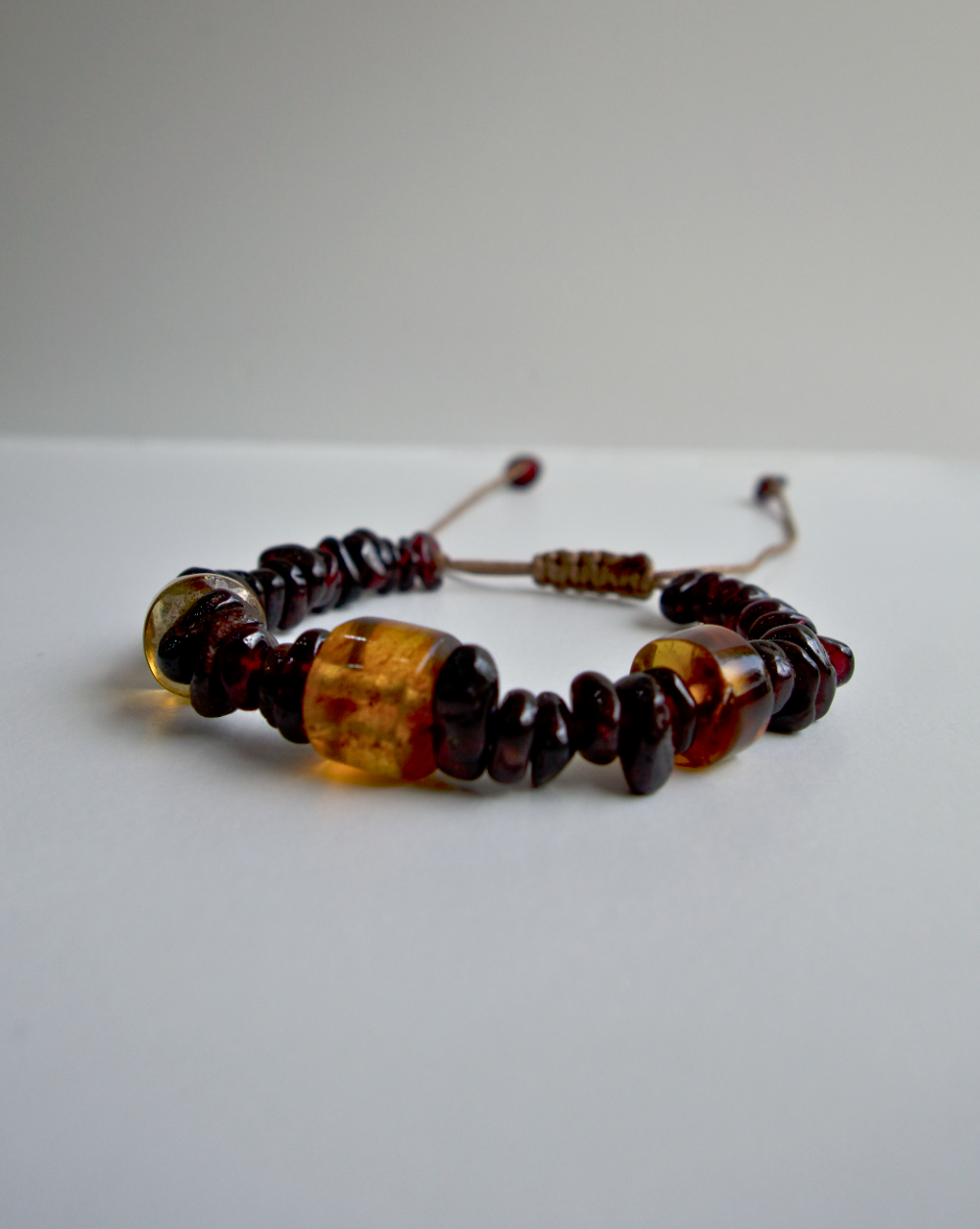 Pulsera de granate con Ámbar de Chiapas y hematita . Pulsera diseño de hilo ajustable, esta pulsera combina dos piedras naturales: El Ámbar de Chiapas, tradicionalmente utilizado como un amuleto protector contra energías negativas y el mal de ojo y el granate ee considera una piedra protectora, que ayuda a alejar la negatividad.