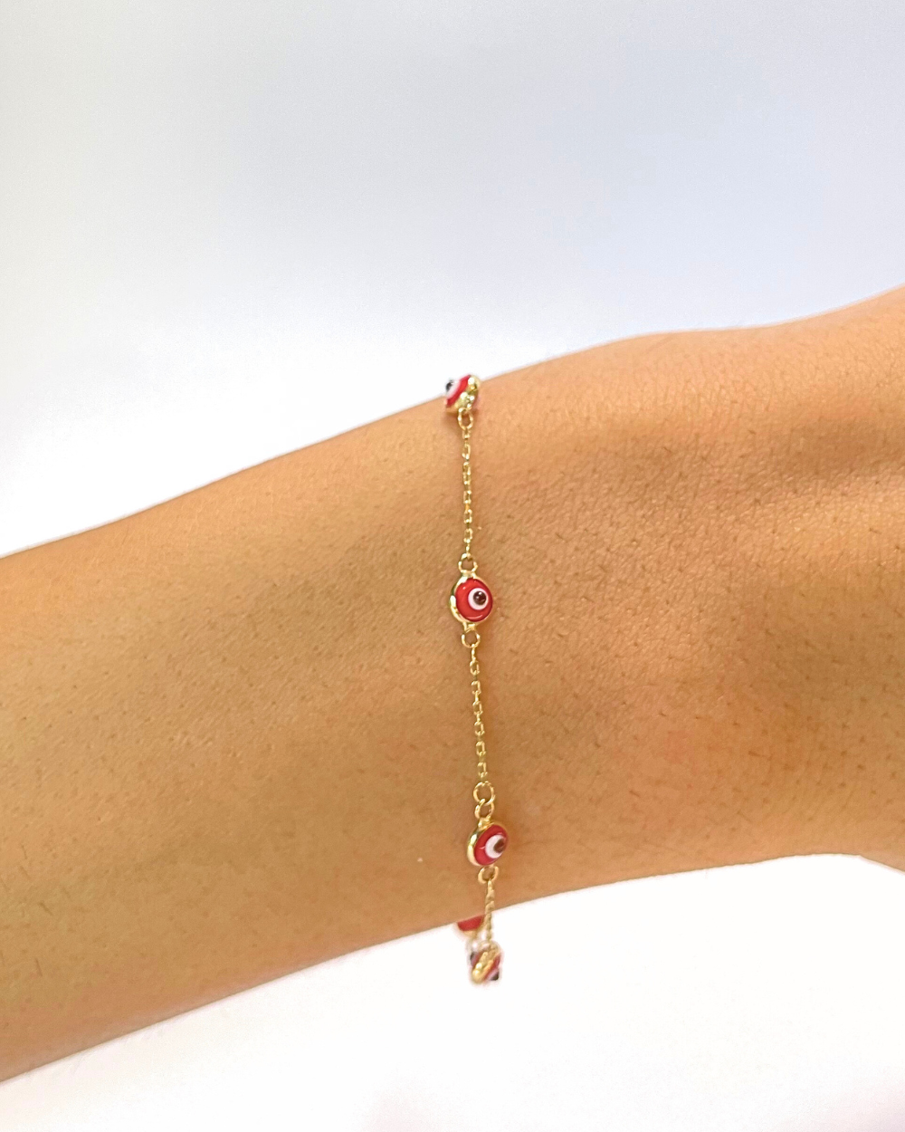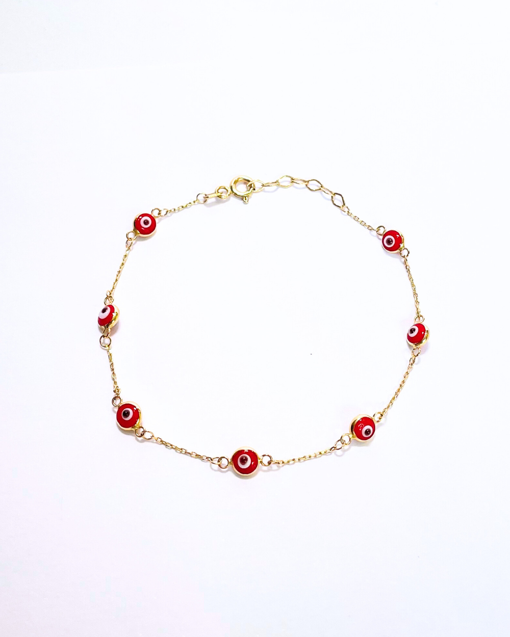 PULSERA OJOS TURCOS ROJOS ORO 14K SKU ORO55